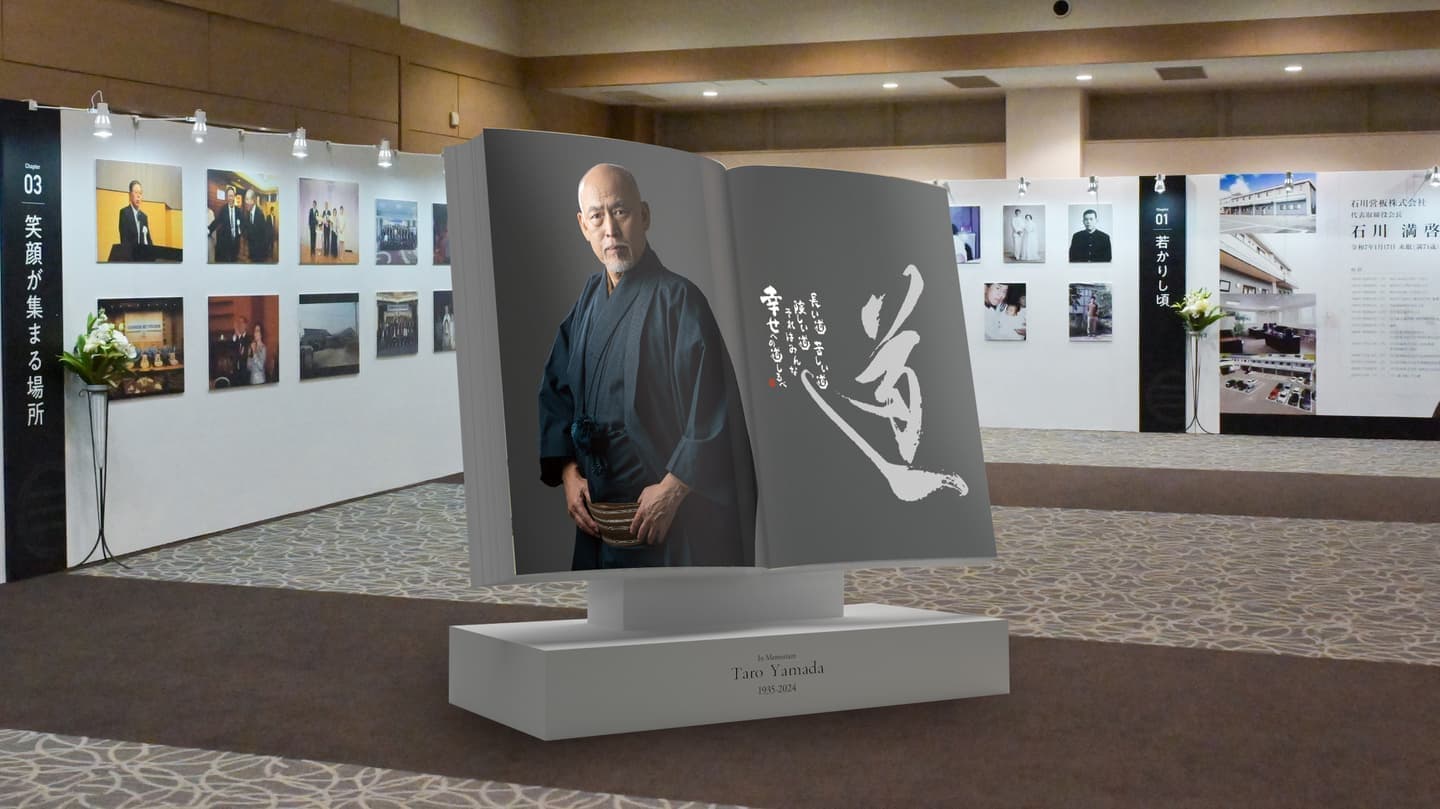 Big Albumは、大判サイズの紙面に故人らしさを詰め込んだ、その日しか見ることのできない特別なアルバムです。式場内にて展示し、ご参列の方々にご覧いただくことにより、記憶を共有することができます。